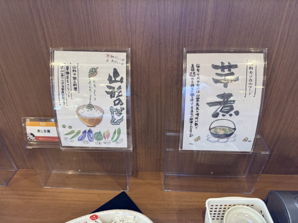 芋煮、山形のだし、はえぬきなどご当地グルメが豊富でした。